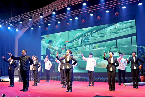 迪尼斯酒店開(kāi)元店表演的團(tuán)隊(duì)風(fēng)采《眾志成城·從頭再來(lái)》是公司員工紀(jì)律、業(yè)務(wù)、才藝、禮儀與團(tuán)隊(duì)精神的綜合展示,獲得二等獎(jiǎng),獎(jiǎng)勵(lì)2000元;